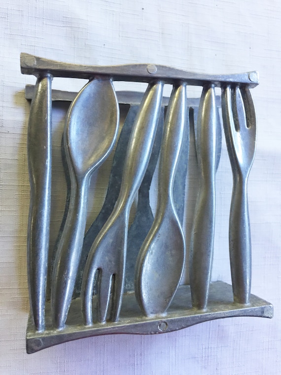 Vintage Handmade Iron Metal Spoon And Fork Napkin Holder 5 Ebay