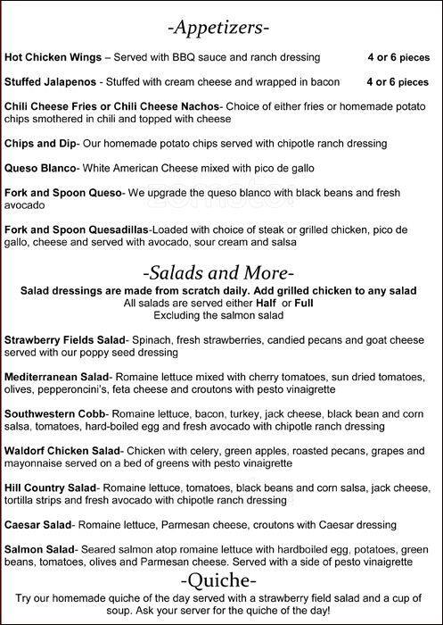 Fork And Spoon Home New Braunfels Texas Menu Prices