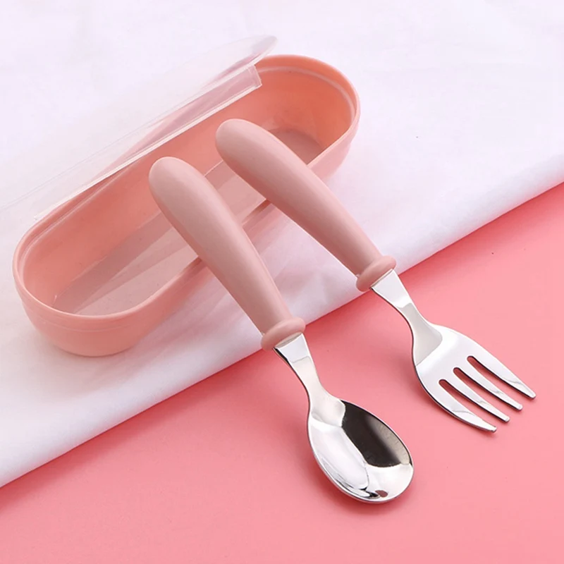Tumama 2pcs Lot Baby Feeding Spoon Fork Set Stainless Steel