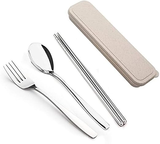 3pcs Stainless Steel Chopsticks Spoon Fork Tableware Set Portable