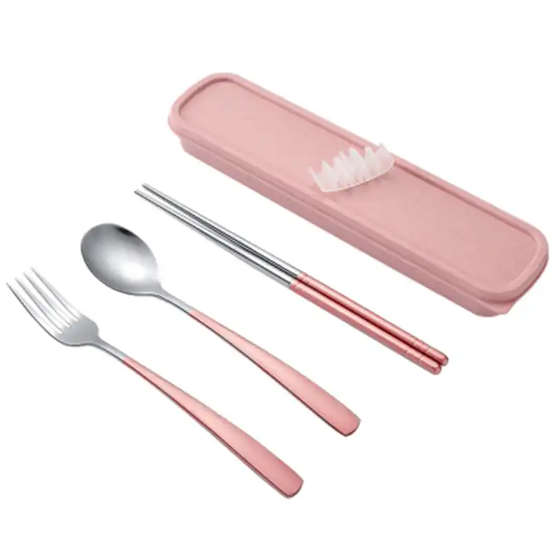 3pcs Stainless Steel Chopsticks Spoon Fork Tableware Set Portable