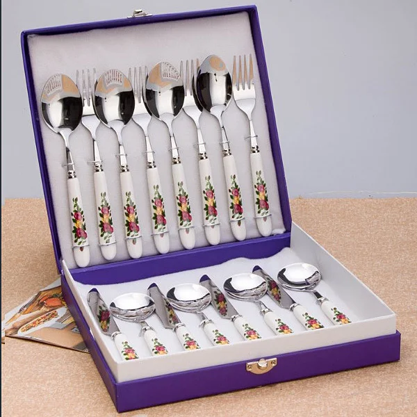 16pcs Set Ceramic Handle Western Stainless Steel Flatware Cutlery