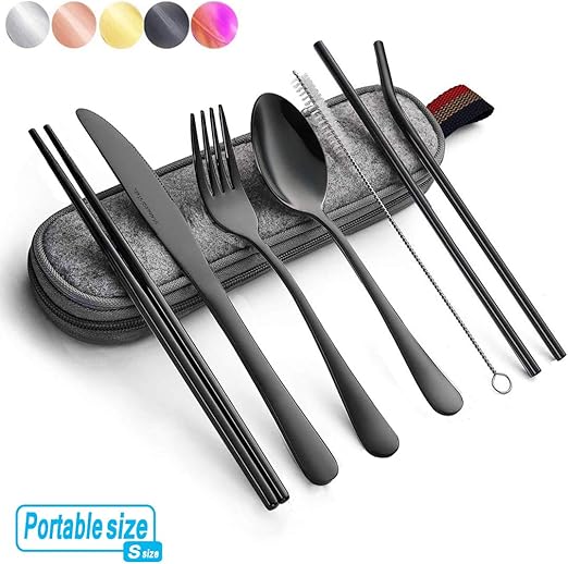 Amazon Com Black Travel Flatware Set With Case Stainless Steel
