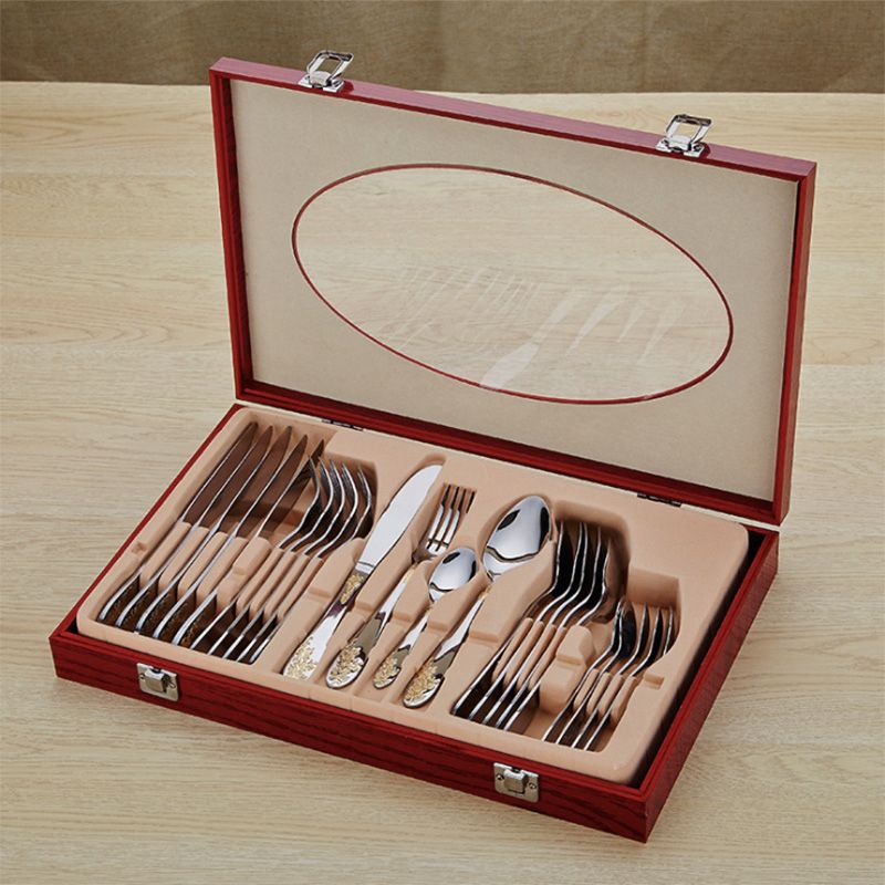 24pc Set Stainless Steel Dinnerware Set With Gift Box Spoon Fork