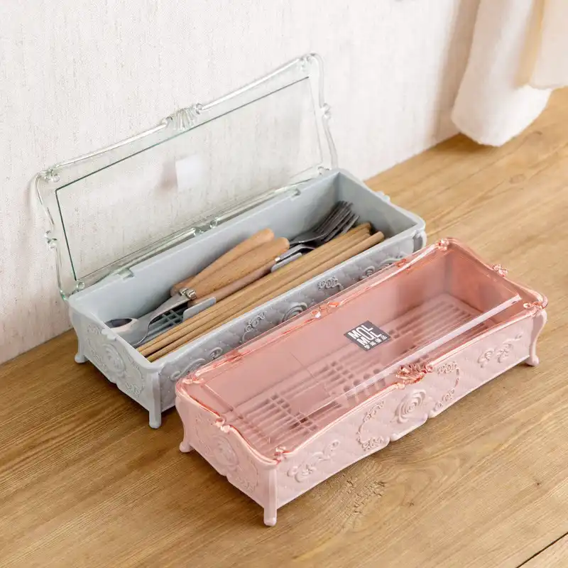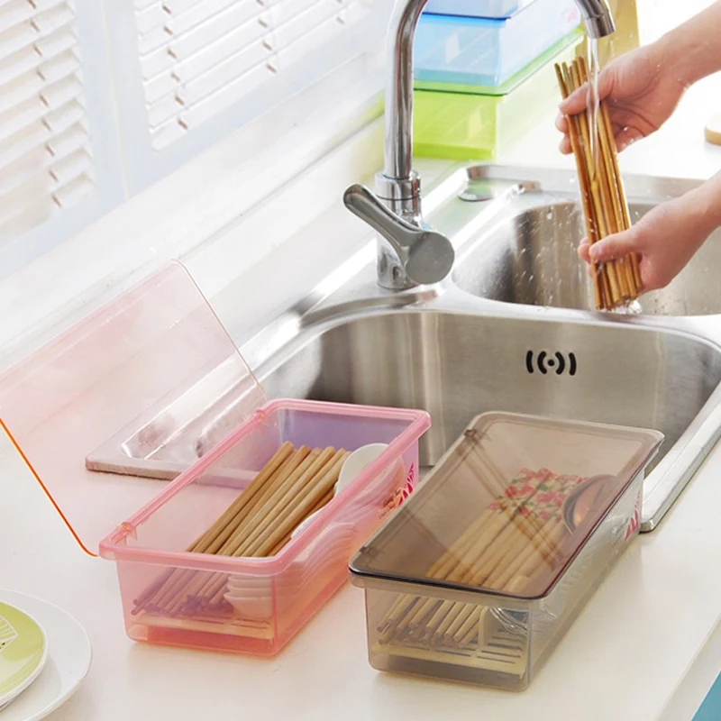 Dust Proof Chopsticks Fork Spoon Storage Box With Drain Plastic