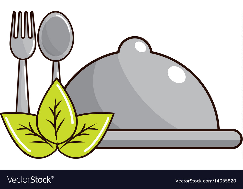 Tray With Spoon And Fork Tools With Leaves Vector Image