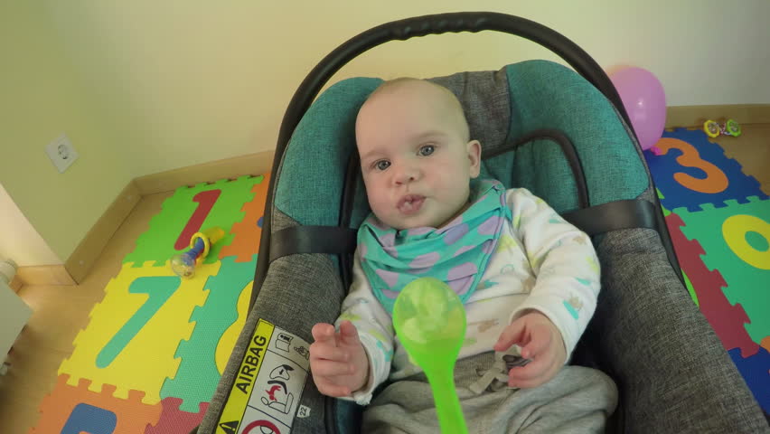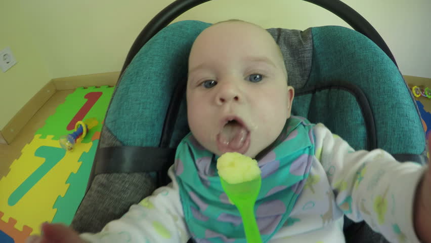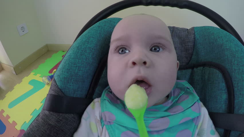 Mother With Plastic Spoon Feed Stock Footage Video 100 Royalty