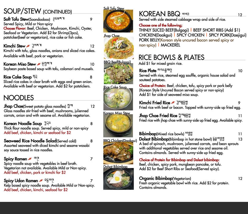 Spoon Korean Bistro Menu Menu For Spoon Korean Bistro Berkeley