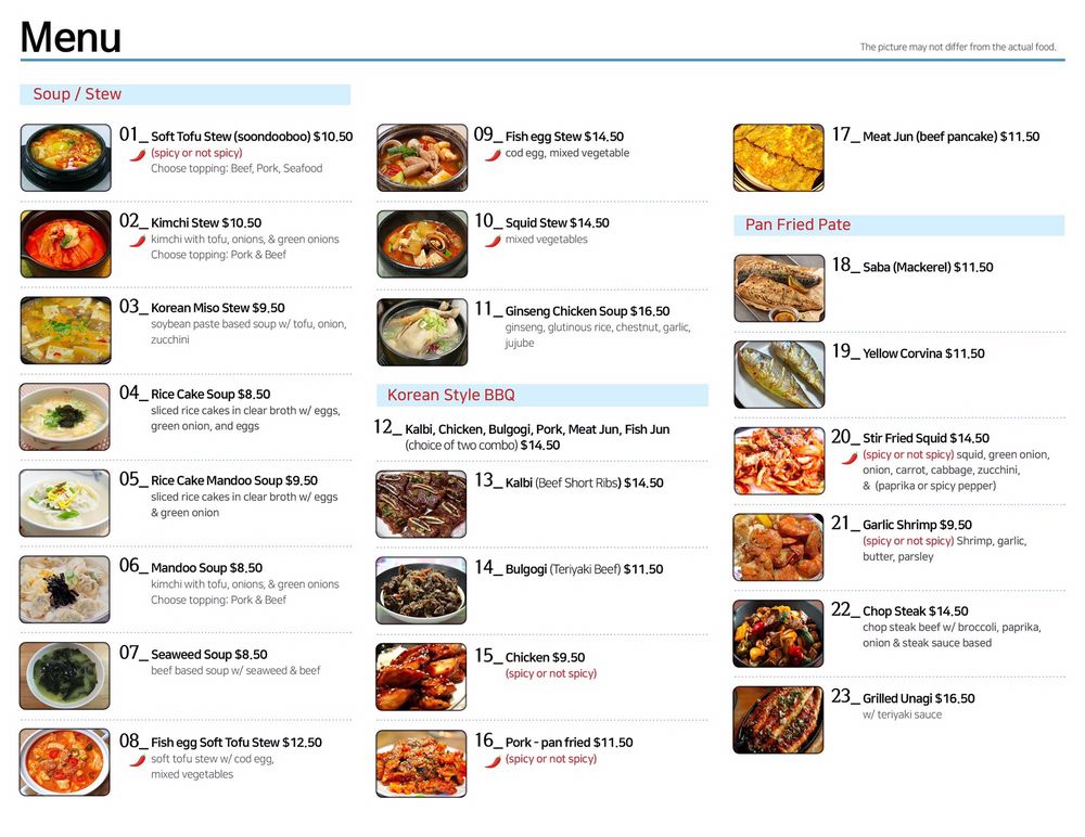 Menu At Spoon Korean Kitchen Restaurant Ewa Beach 91 775 Papipi Rd