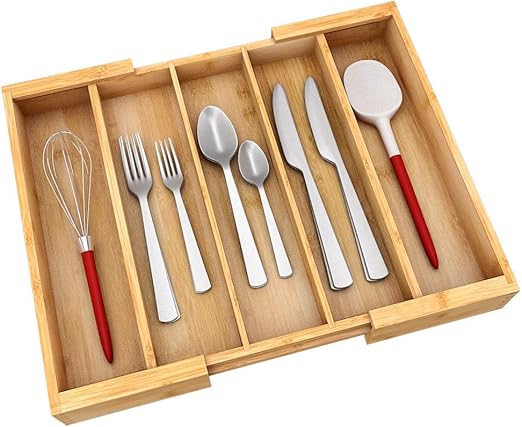 Amazon Com Kitchen Utensil Drawer Organizer Dividers Bamboo Expandable Flatware Silverware Cutlery Tray For All Size Forks Knives And Spoons Kitchen Dining