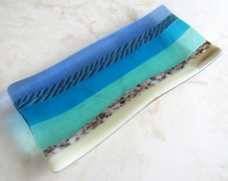 Fused Glass Spoon Rest Beach Plate Ocean Dish Turquoise Etsy