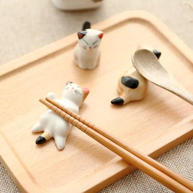 1 Set Zakka Cute Ceramic Chopstick Stand Rest Spoon Holder Chop