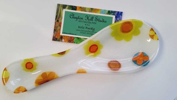 Fused Glass Spoon Rest Bold Flowers Etsy