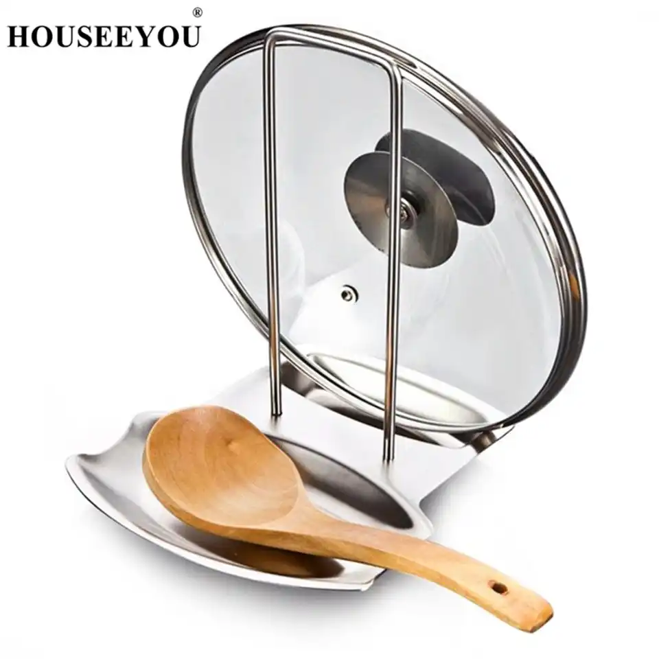 Houseeyou Stainless Steel Pan Pot Rack Cover Lid Rest Stand Spoon
