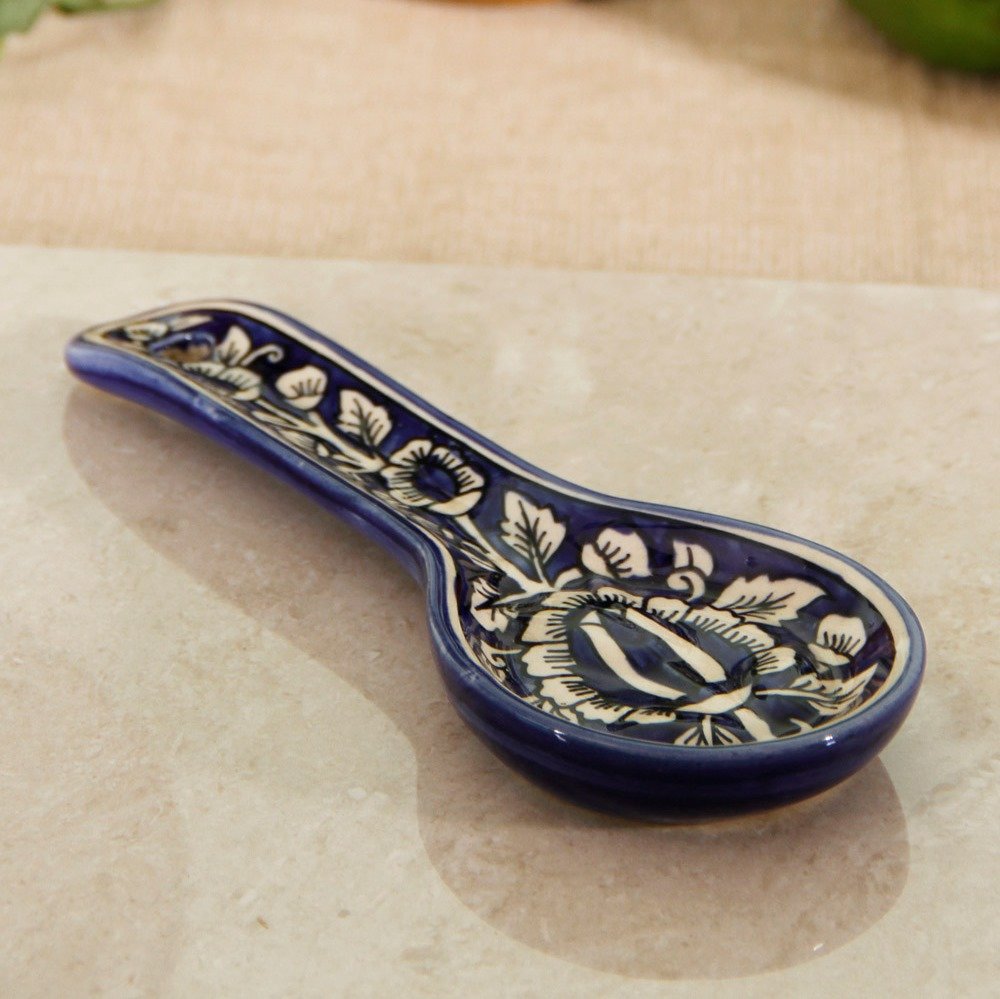 Buy Unravel India Ceramic Mughal Handpainted Spoon Rest Blue