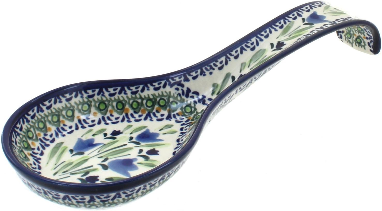Amazon Com Blue Rose Polish Pottery Blue Tulip Large Spoon Rest Stoneware Spoon Rest Kitchen Dining