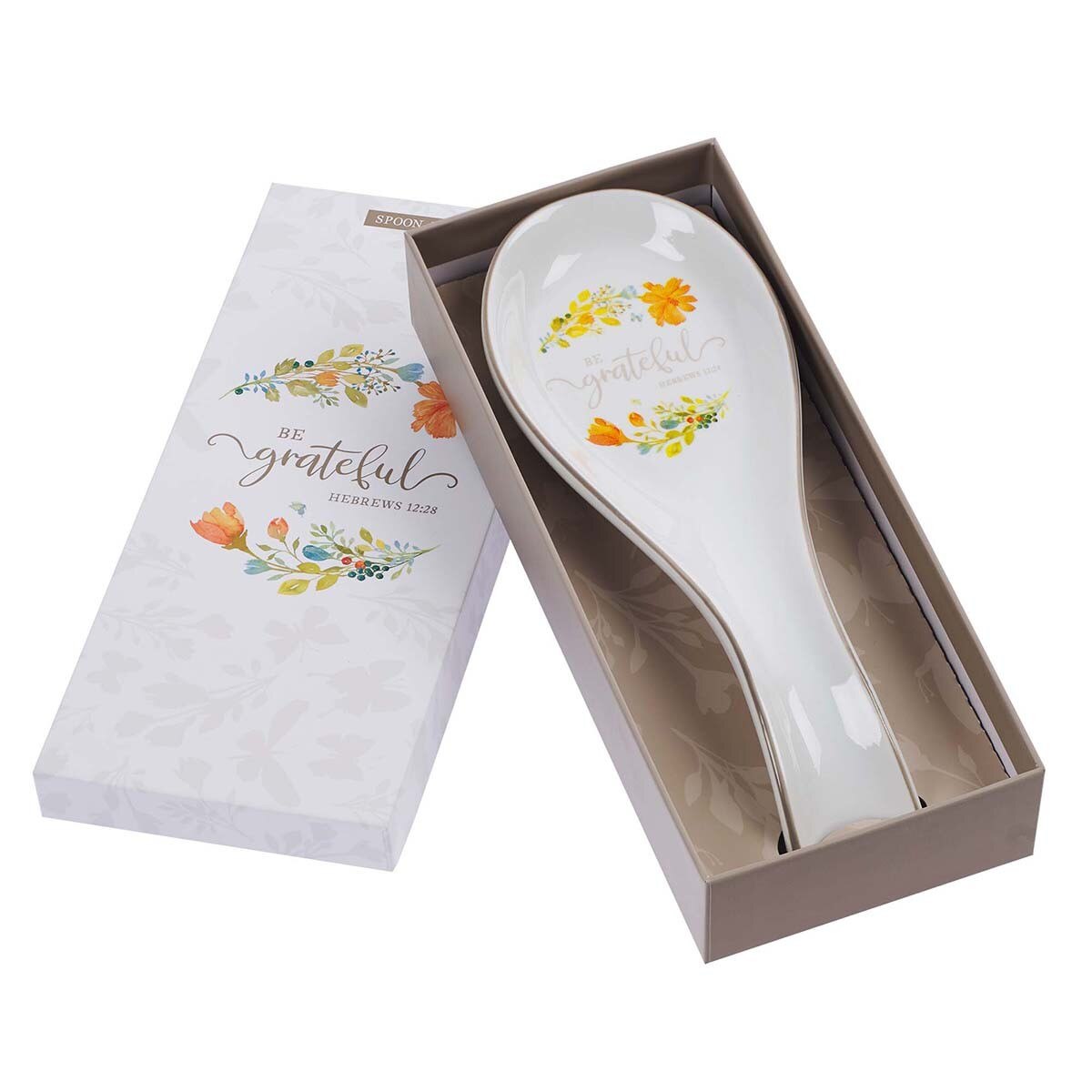 Be Grateful Ceramic Spoon Rest Hebrews 12 28
