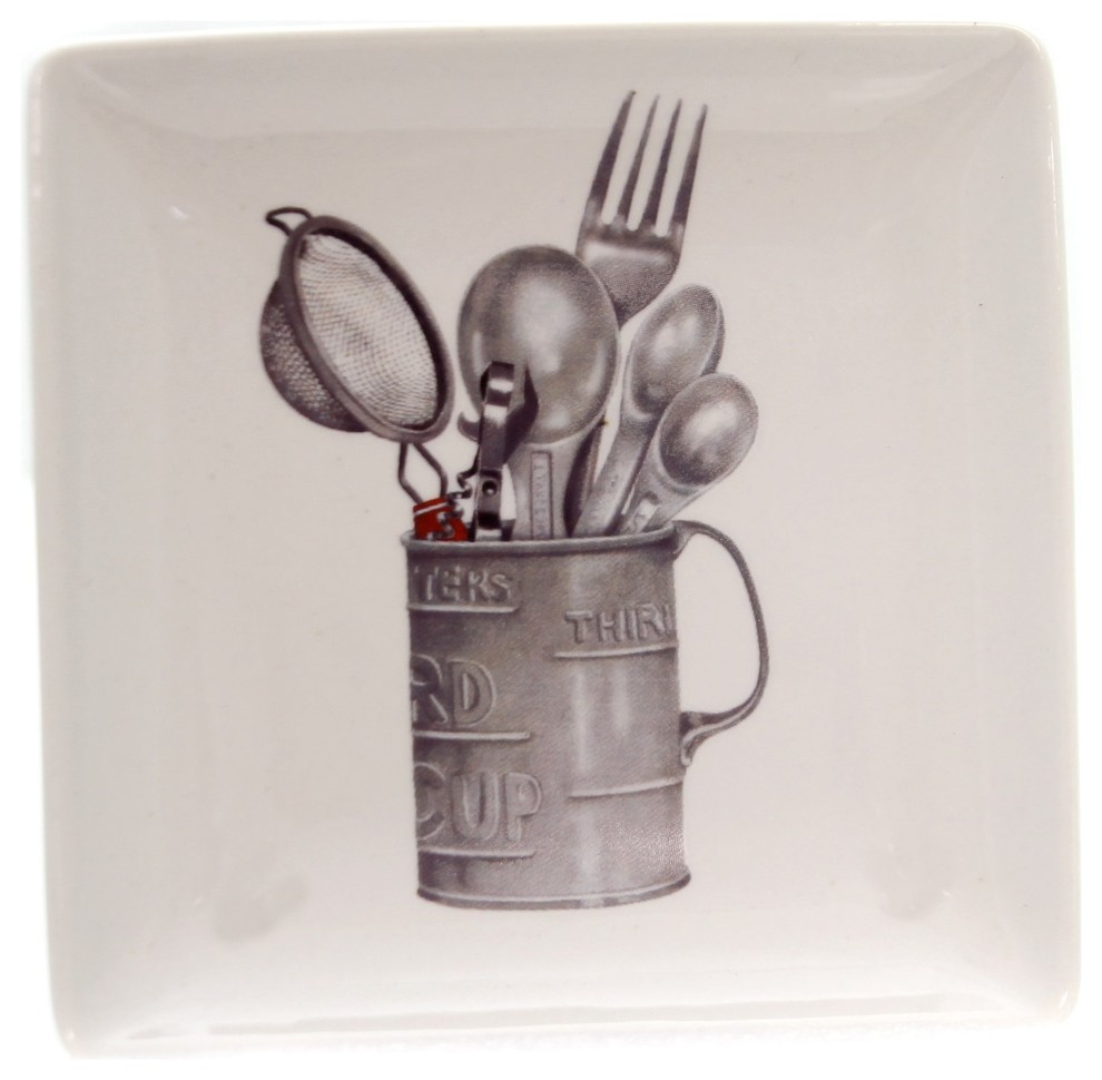 Tabletop 4 Square Stoneware Dish Ceramic Spoon Rest Decor Da9401a