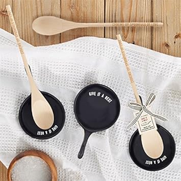 These black and white kitchen sayings spoon rests are sleek and functional additions to any kitchen. Each features different saying. Note about hand stamping. Each measures 10 6l x 5w x 1 2h in.
