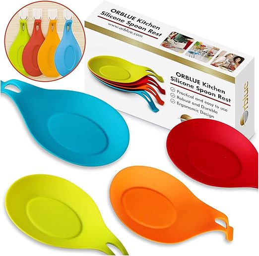 Orblue Flexible Almond Shaped Silicone Spoon Rest 4 Pack