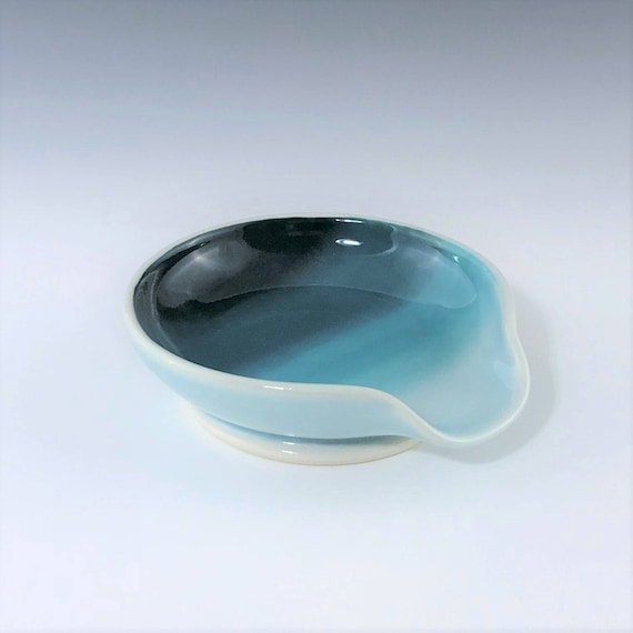 Teal Ceramic Spoon Rest Aqua Ombre Porcelain Spoon Holder Etsy