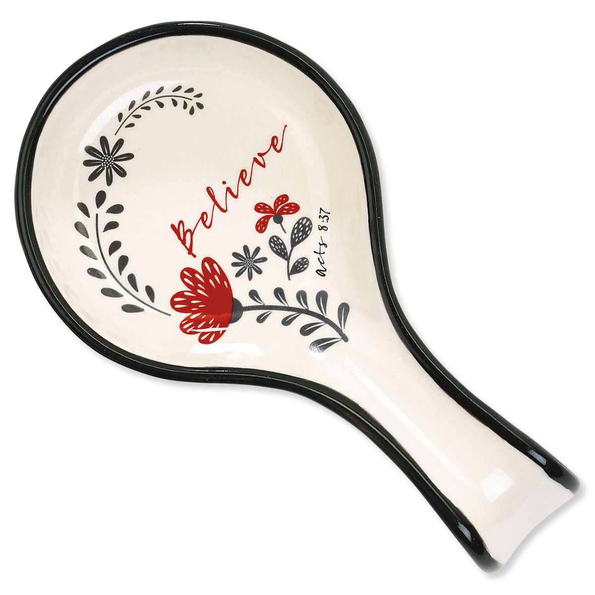 Leap Of Faith Ceramic Spoon Rest With Scripture Wooden Spoon