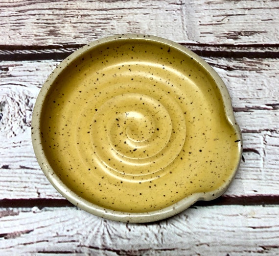 Ceramic Spoon Rest Yellow And Beige Pottery Spoon Rest Etsy