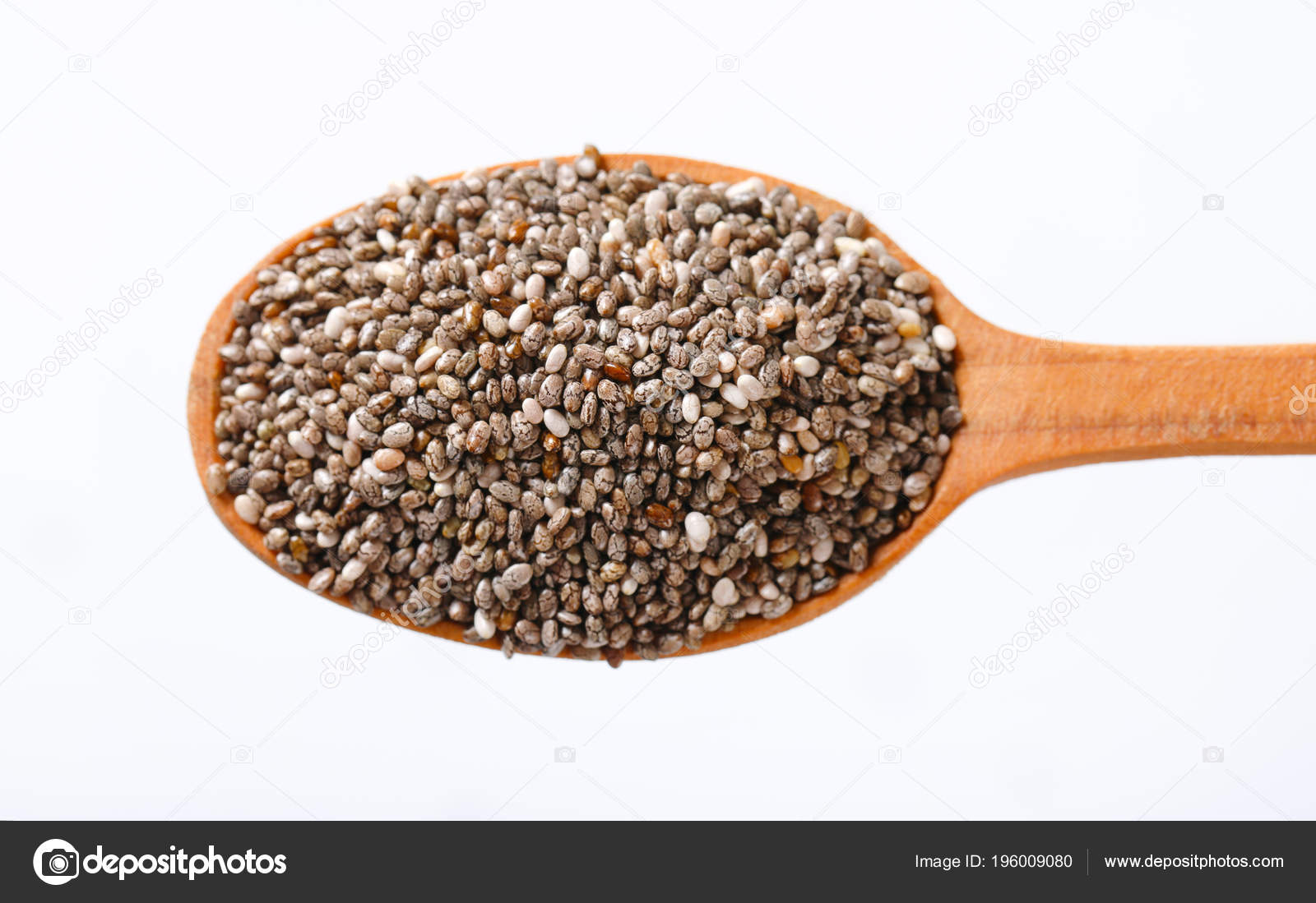 Chia Seeds In Wooden Spoon In White Background Stock Photo Image