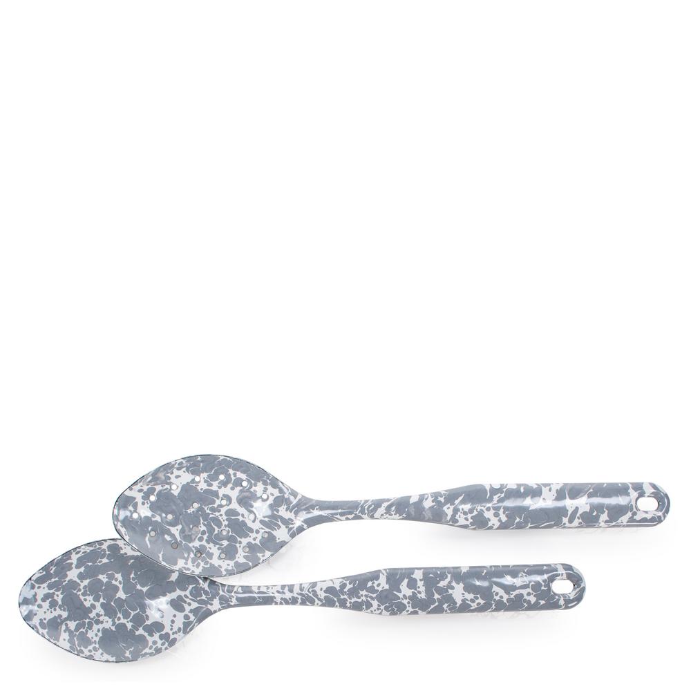 Golden Rabbit Grey Swirl 2 Piece Enamelware Spoon And Slotted