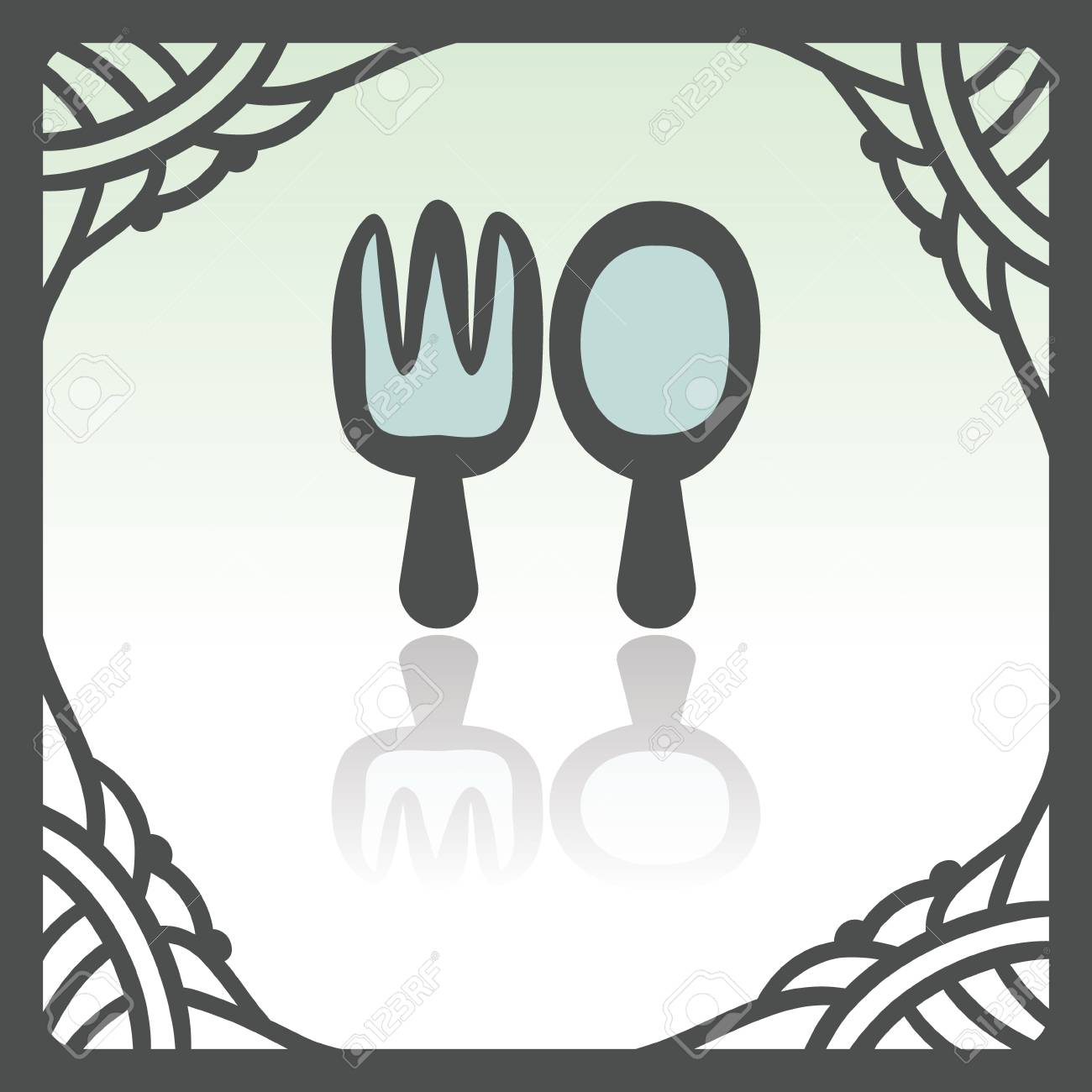 Vector Outline Fork And Spoon Icon In Hand Drawn Frame Elements