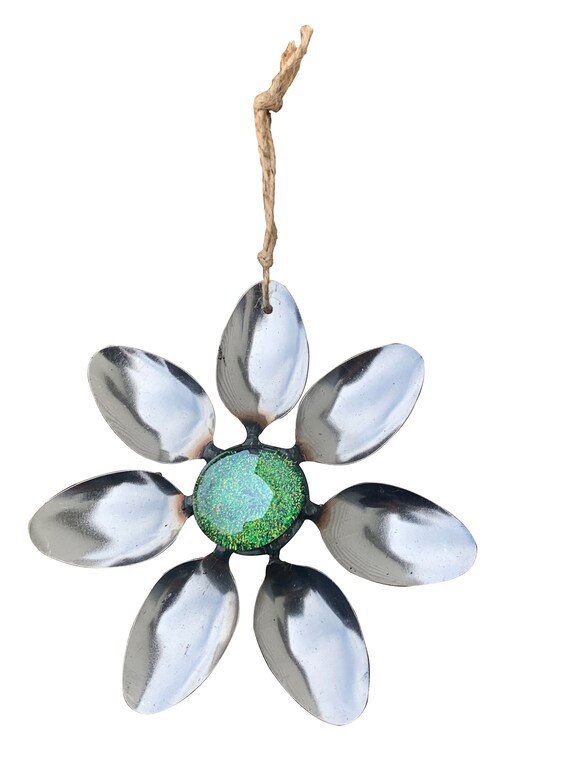 Spoon Flower Green Stone Hangersilverware Artmetal Yard Art Etsy