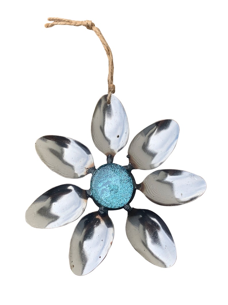 Spoon Flower Blue Stone Hangersilverware Artmetal Yard Art Etsy