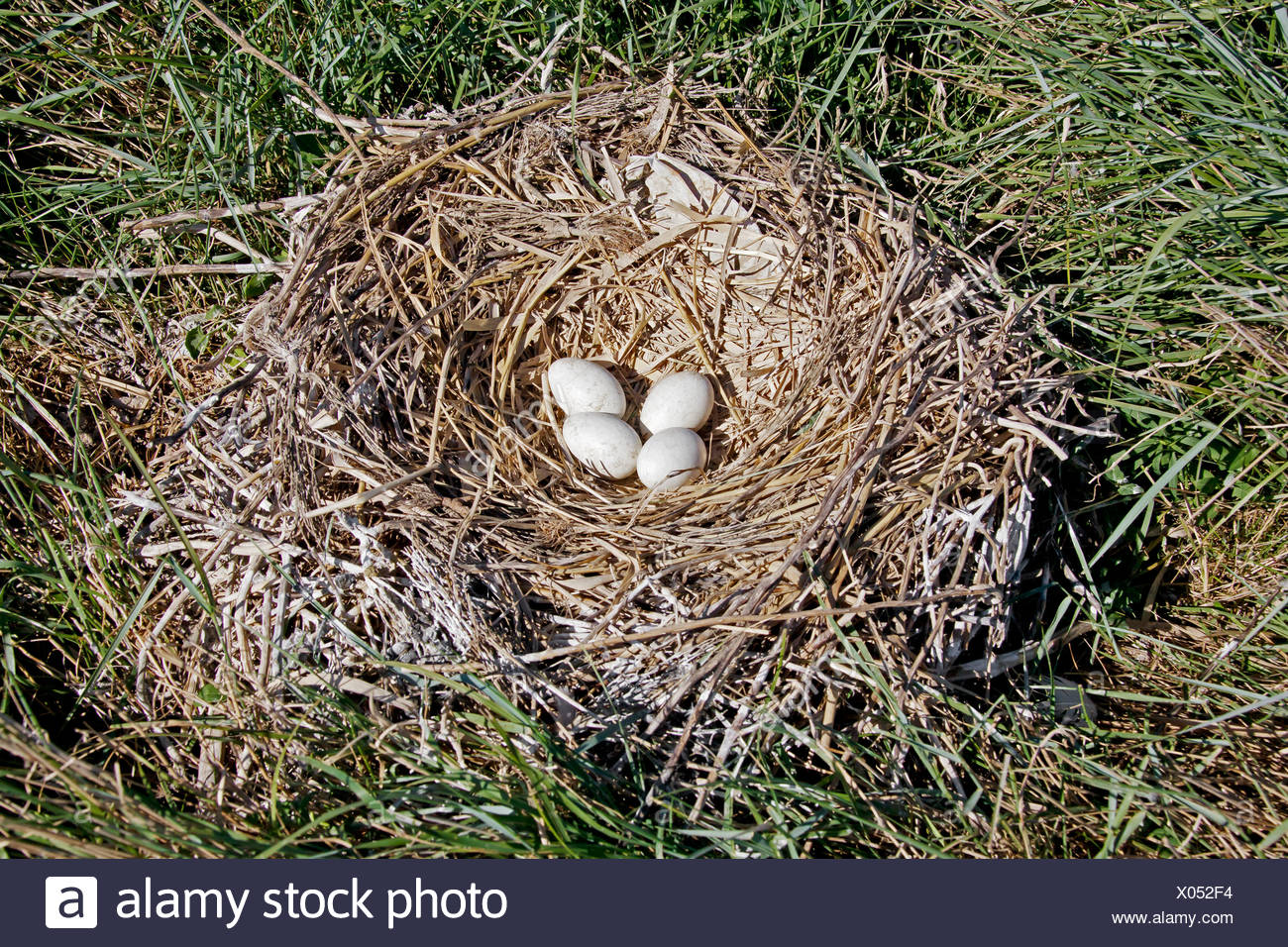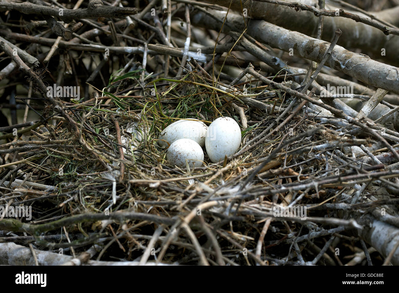 White Spoonbill Platalea Leucorodia 3 Eggs On Nest Stock Photo