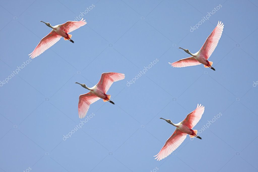 Roseate Spoonbills In Flight Stock Photo C Steve Byland 7915953