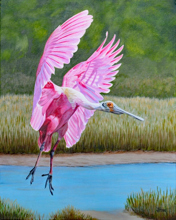 Roseate Spoonbill In The Marsh Print Of Original Painting Etsy