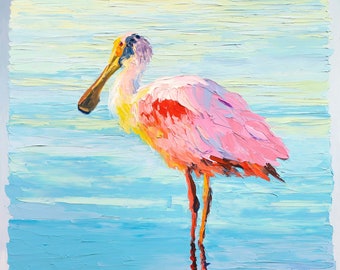 Roseate Spoonbill Painting Beach Art Nautical Themed Decor Etsy