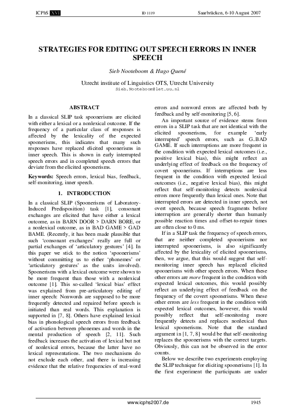 Pdf Strategies For Editing Out Speech Errors In Inner Speech