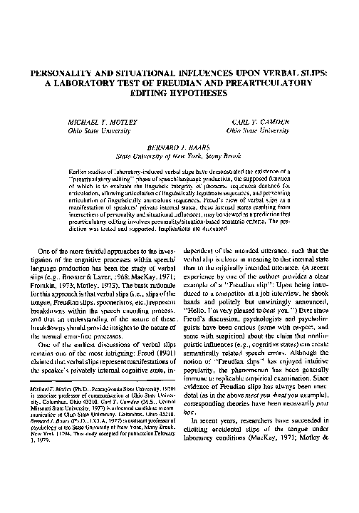 Pdf Personality And Situational Influences Upon Verbal Slips A