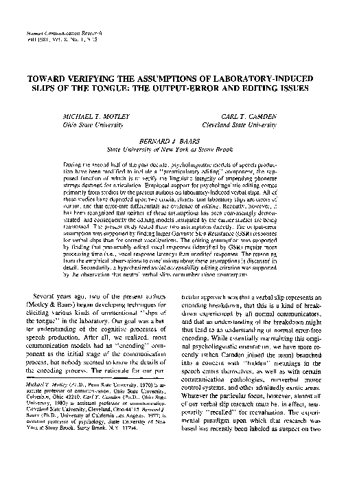 Pdf The Slip Technique As A Window On The Mental Preparation Of