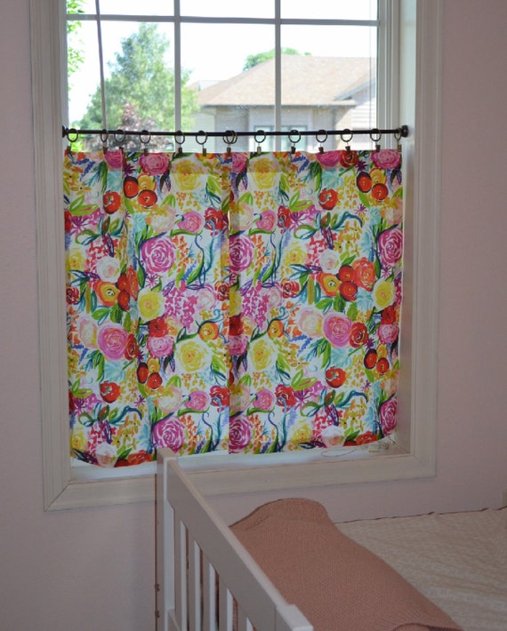 Bold Floral Spoonflower Valances And Cafe Curtains Floral Etsy
