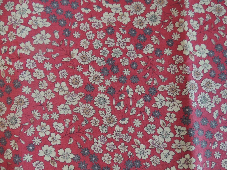 Cotton Poplin Fabric Coupon Red Flower Background Cream And Etsy