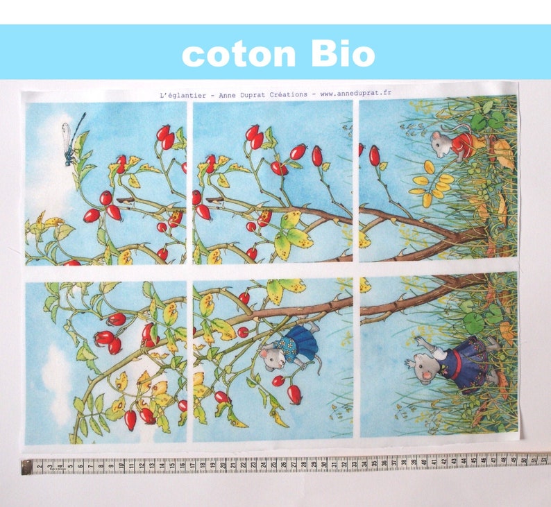 Cotton Organic Fabric Patchwork Illustrated Mouse In Autumn Etsy