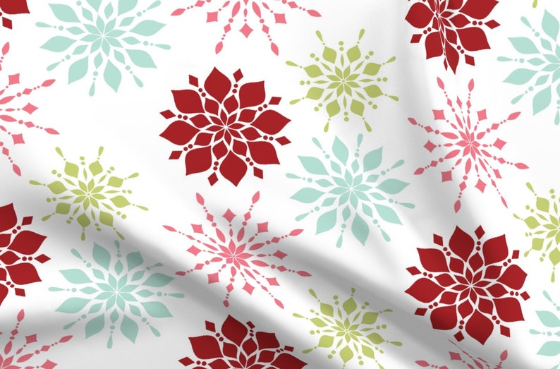 Modern Holiday Fabric Elegant Snowflakes Modern By Etsy
