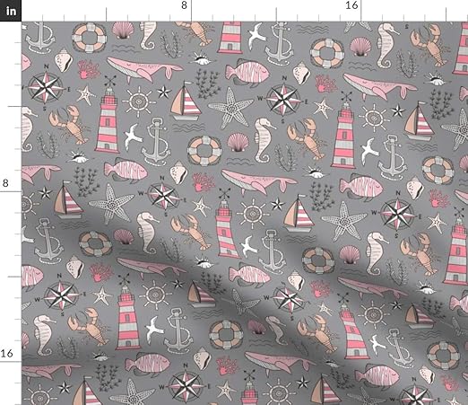 Amazon Com Spoonflower Fabric Nautical Doodle Whale Light House Anchor Pink Dark Grey Whale Sailing Printed On Linen Cotton Canvas Fabric By The Yard Sewing Home Decor Table Linens Apparel Bags