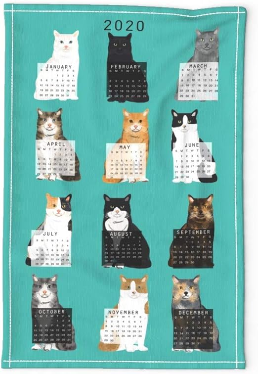 Amazon Com Roostery Spoonflower Tea Towel 2020 Cat Calendar Cat