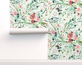 Floral Wallpaper Desert Oasis Sage By Heatherdutton Etsy