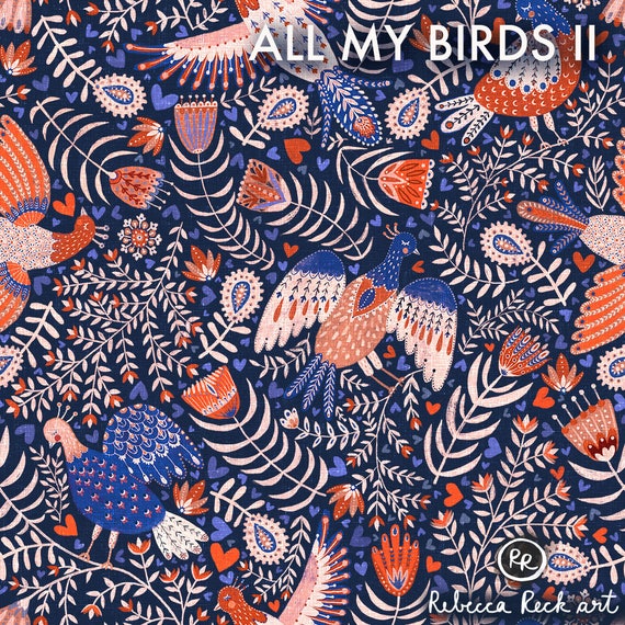 Sweat Fabric All My Birds Swedish Folk Art Etsy