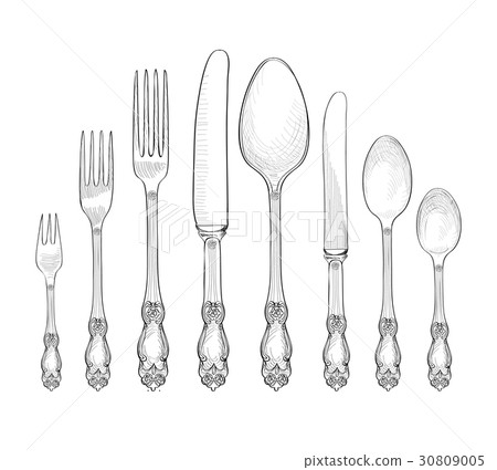 Table Setting Set Fork Knife Spoon Plate Sketch Set Cutlery