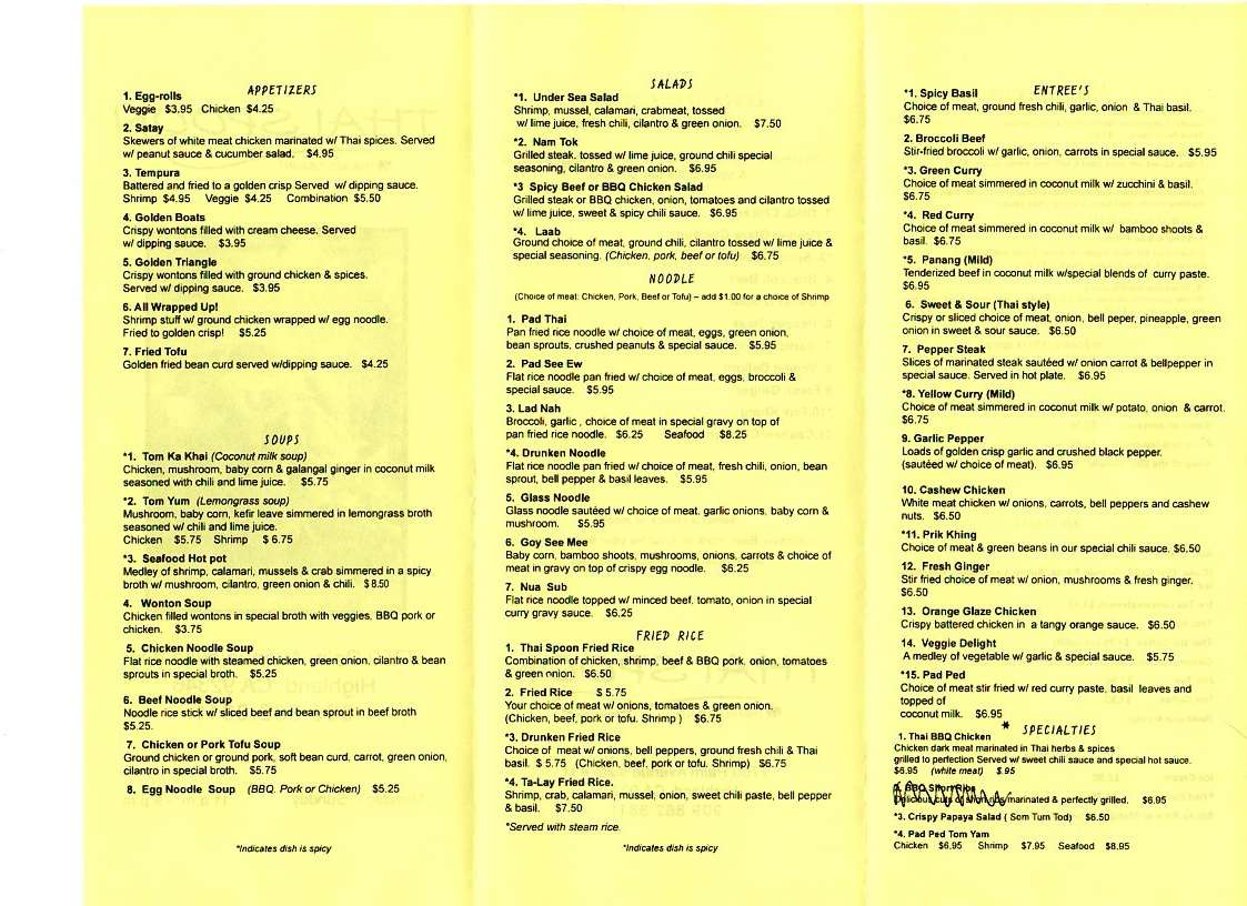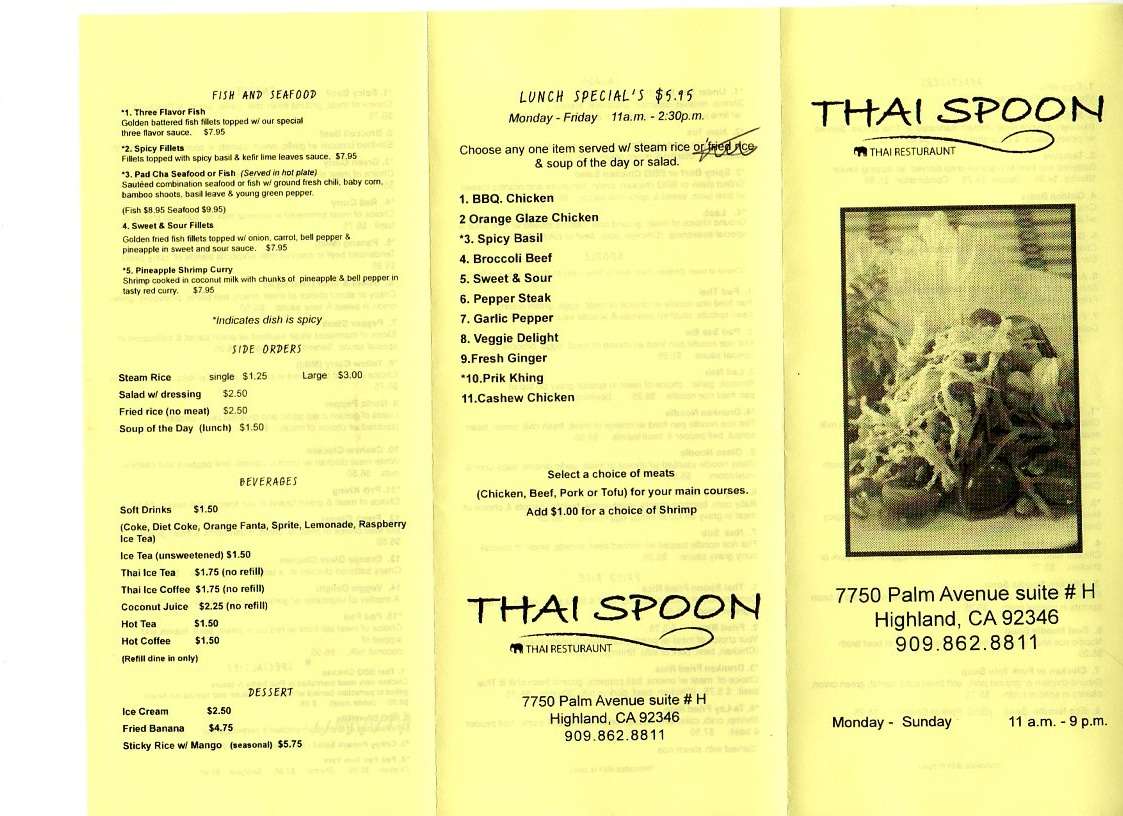 Thai Spoon Menu Menu For Thai Spoon Highland Inland Empire