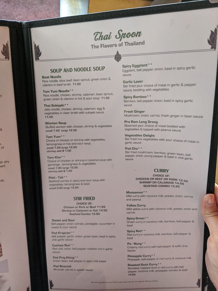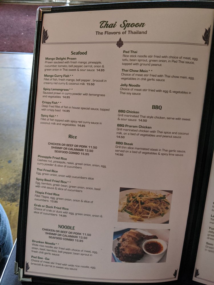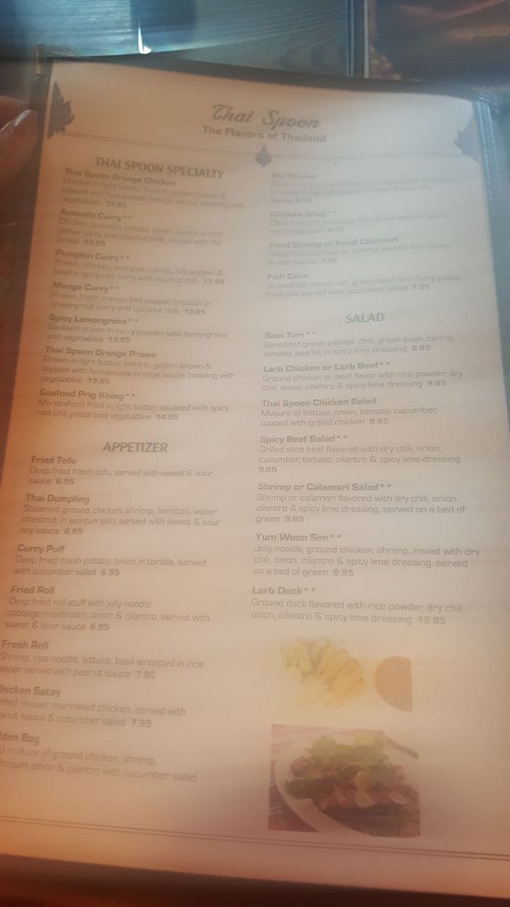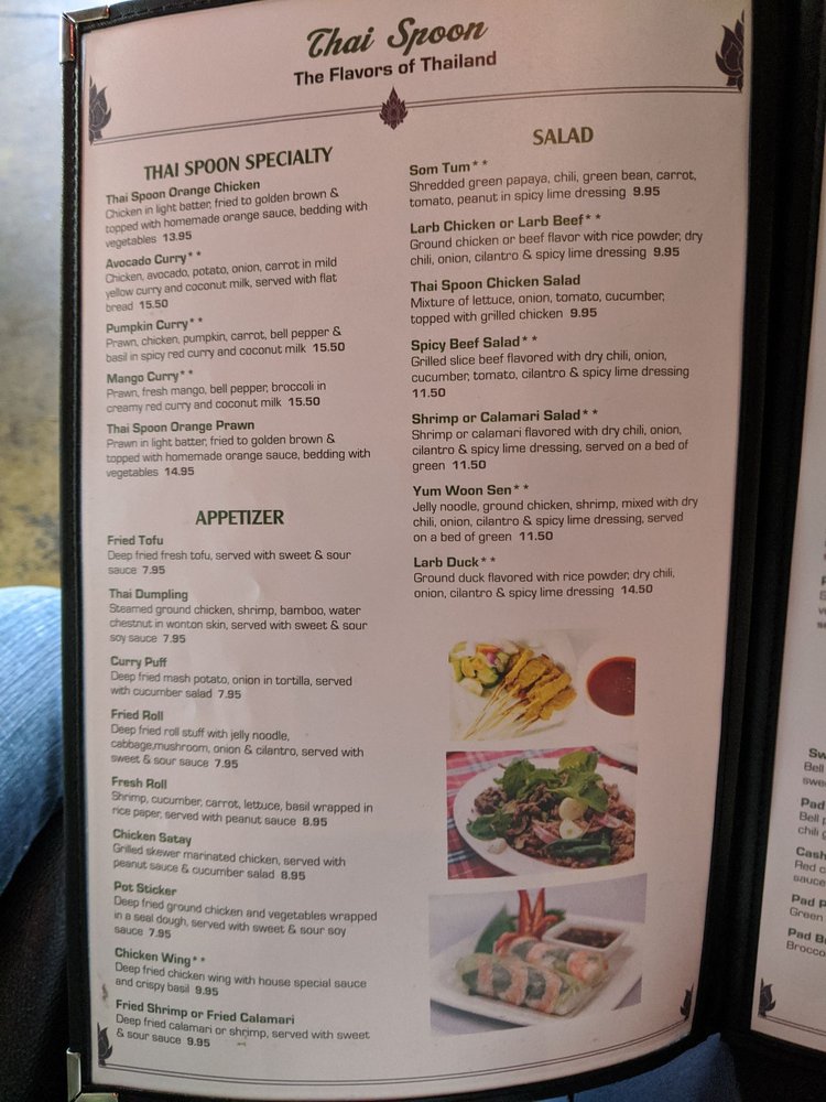 Thai Spoon Restaurant Menu In Sacramento California Usa